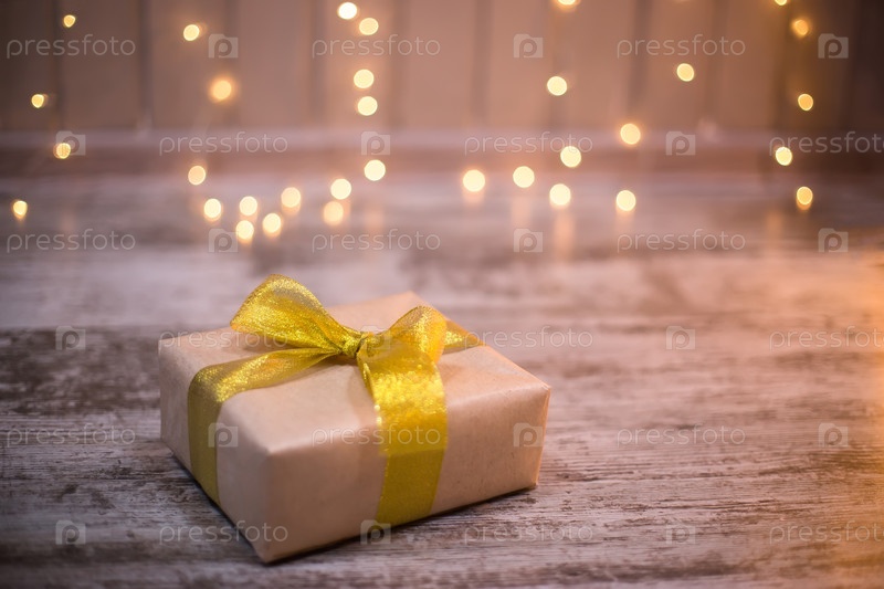 Подарок на деревянном фоне