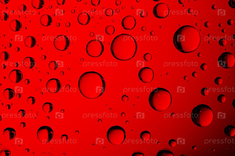 Капли воды на стекле. Красный абстрактный фон