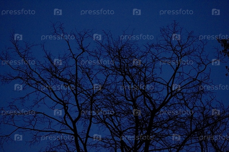Кроны деревьев на фоне вечернего синего неба