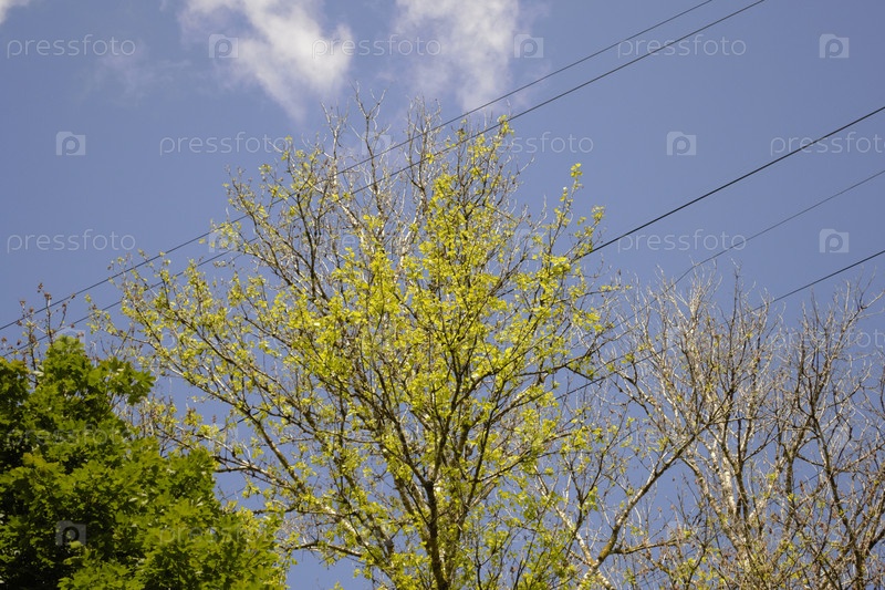 Кроны деревьев на фоне голубого неба