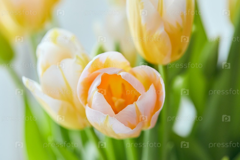 Букет белых и желтых тюльпанов в вазе на окне. Нежные цветы к празднику