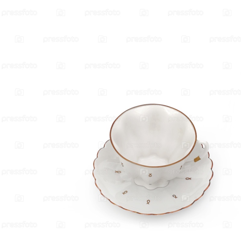 Красивые белые фарфоровые чашки чая, изолированные на белом фоне