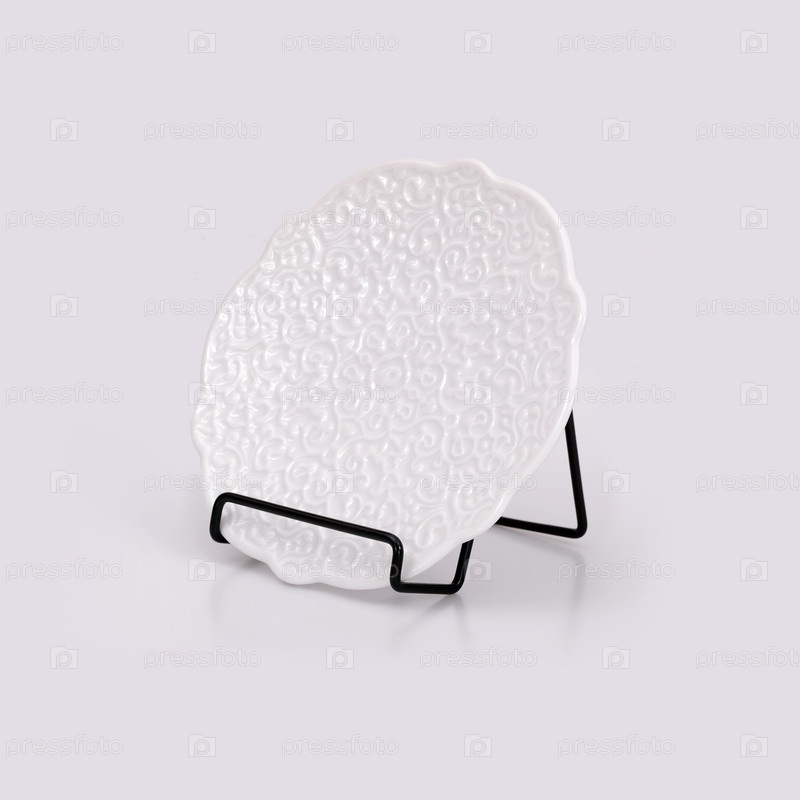 Белая керамическая тарелка на белом фоне