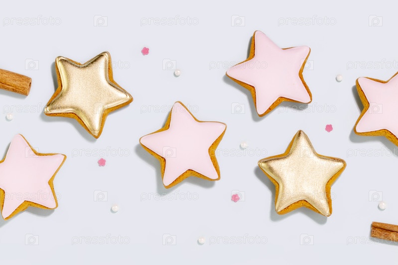 Праздничное имбирное печенье в форме звезд, глазированное сахарной глазурью