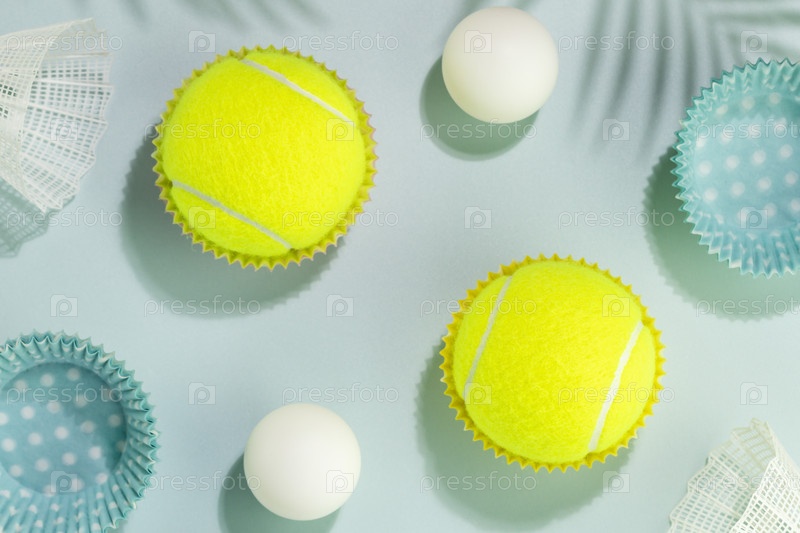 Летняя спортивная карта с теннисными мячами, мячами для настольного тенниса и воланами