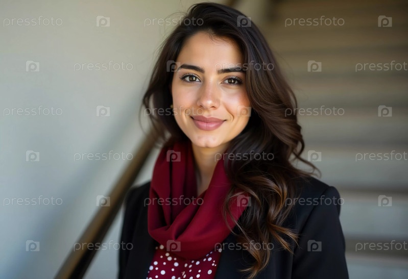 Молодая женщина из Газы стоит уверенно, демонстрируя свою сияющую улыбку и элегантный наряд
