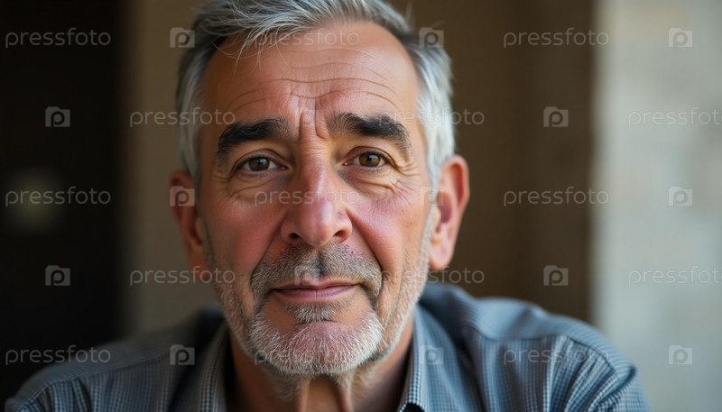Зрелый мужчина из Газы сидит задумчиво, его мудрые глаза раскрывают истории стойкости. Мягкий дневной свет подчеркивает контуры его обветренного лица, изображая богатую жизнь