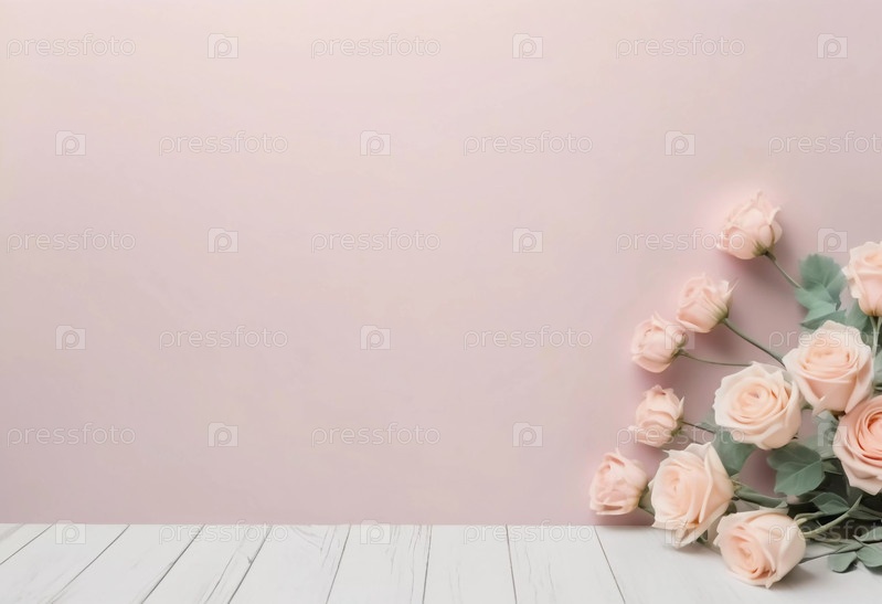 Нежно-розовые розы на пастельном фоне создают спокойное, элегантное пространство, идеально подходящее для личных сообщений, приглашений или творческих проектов. Генеративный ИИ