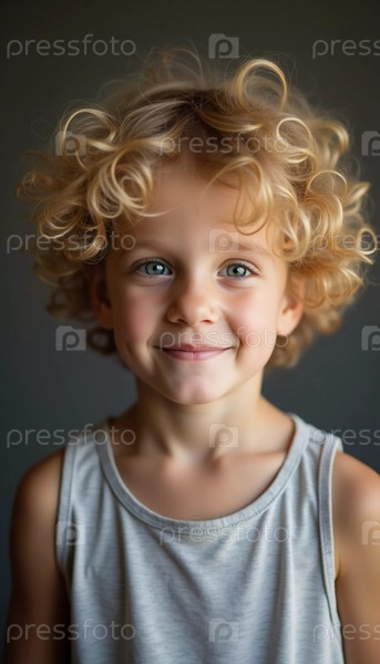 С очаровательной улыбкой и игривыми светлыми локонами мальчик излучает счастье. Генеративный ИИ