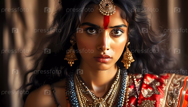 Потрясающая модель демонстрирует изысканные украшения и красочное сари, воплощая дух культурного фестиваля с элегантностью и уравновешенностью. Генеративный искусственный интеллект