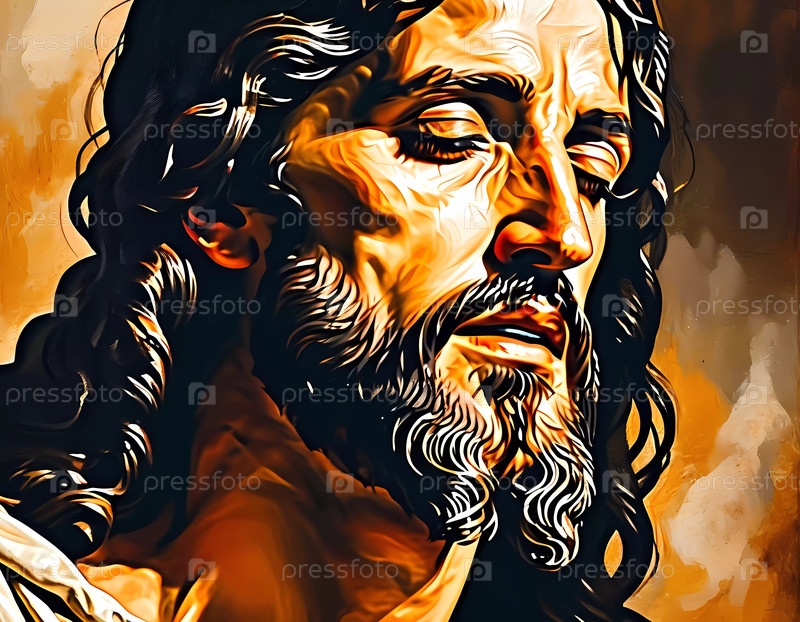 В момент мирного размышления Иисус Христос воплощает спокойствие с закрытыми глазами и нежными чертами лица, излучая тепло и духовную глубину посредством выразительного искусства Генеративный ИИ