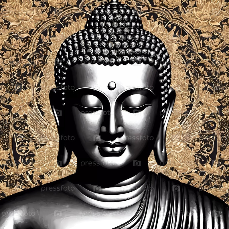 Превосходно выполненная серебряная статуя Будды излучает спокойствие и просветление, а ее фон, украшенный цветочным узором, подчеркивает ее духовную сущность и побуждает к размышлениям. Генеративный искусственный интеллект