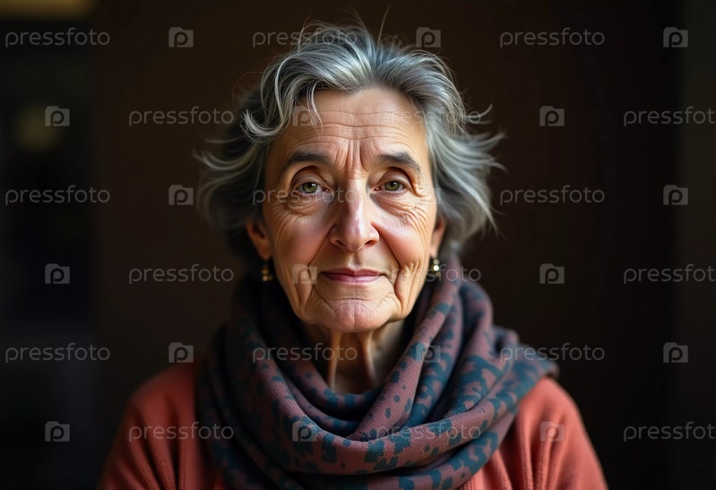 Пожилая женщина из Газы, ее безмятежное выражение лица раскрывает жизнь, богатую историями. Закутанная в уютный шарф, она воплощает дух стойкости и красоты