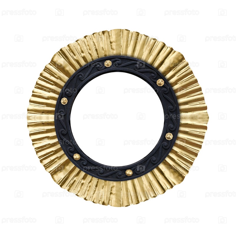 Золотая круглая рамка для картин, зеркал или фото, изолированных на белом фоне. Элемент дизайна с обтравочным контуром
