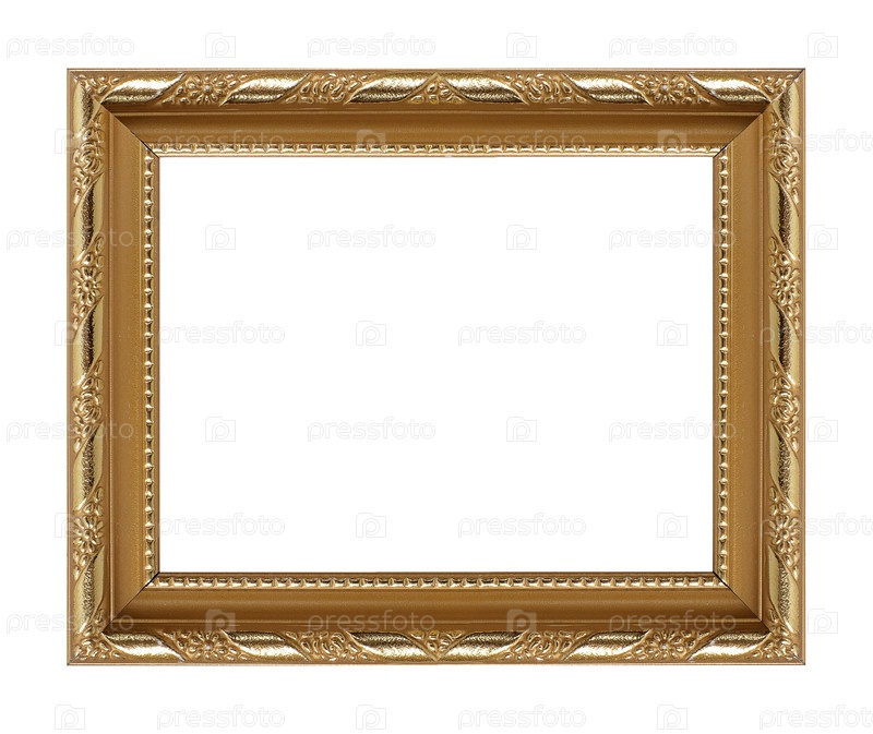 Золотая рамка для картин, зеркал или фото, изолированных на белом фоне. Элемент дизайна с обтравочным контуром