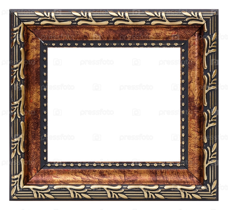 Деревянная рамка для картин, зеркал или фото на белом фоне. Элемент дизайна с обтравочным контуром