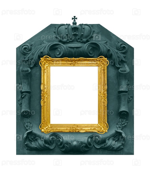 Бронзовая рама для картин, зеркал или фото, изолированных на белом фоне. Элемент дизайна с обтравочным контуром