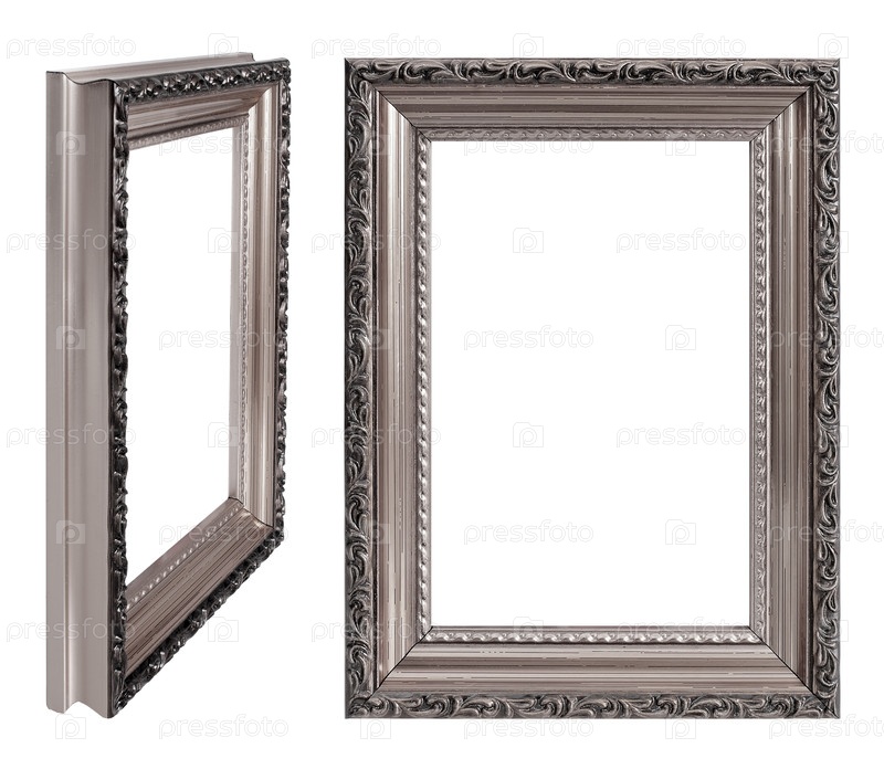 Серебряная рама для картин, зеркал или фотографий в перспективе, изолированная на белом фоне