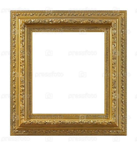 Золотая рама для картин, зеркал или фотографий на белом фоне