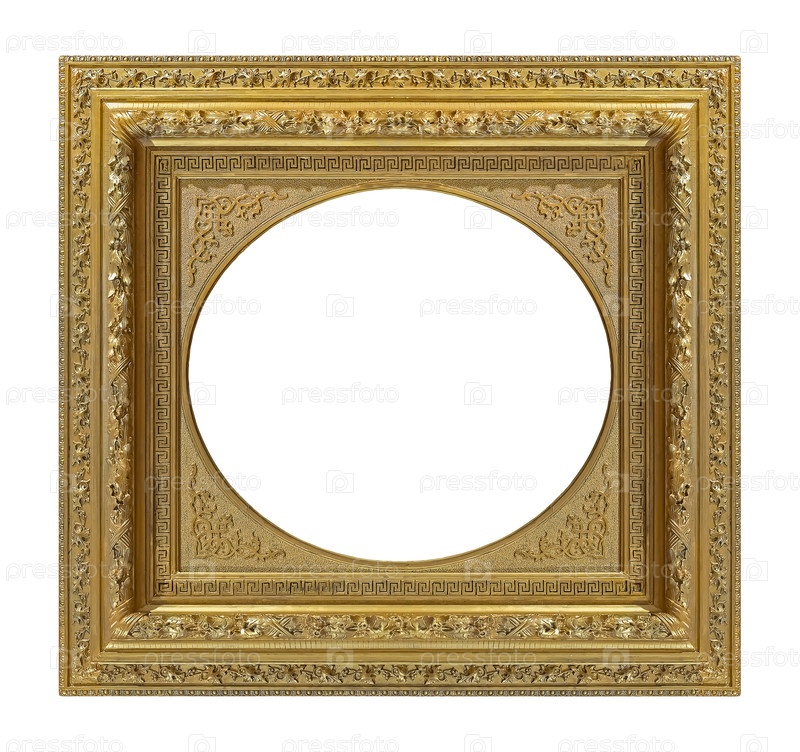 Золотая рамка для картин, зеркал или фото, изолированных на белом фоне. Элемент дизайна с обтравочным контуром