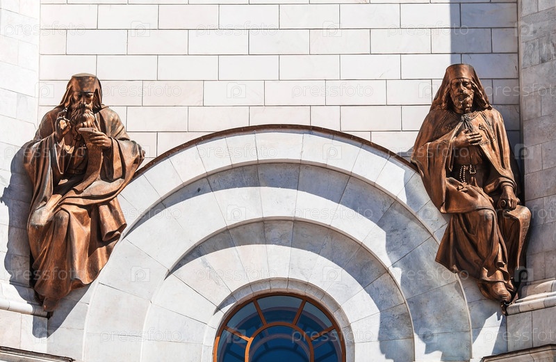 Русский православный собор. Храм Христа Спасителя в Москве. Детали, декоративные элементы на фасаде храма крупным планом. Российская Федерация, Москва