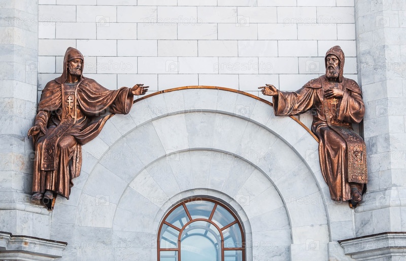 Русский православный собор. Храм Христа Спасителя в Москве. Детали, декоративные элементы на фасаде храма крупным планом. Российская Федерация, Москва