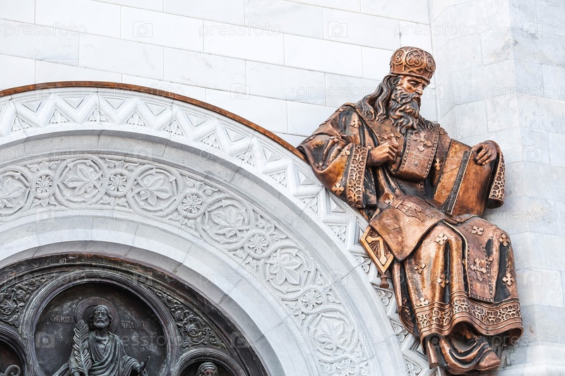 Русский православный собор. Храм Христа Спасителя в Москве. Детали, декоративные элементы на фасаде храма крупным планом. Российская Федерация, Москва