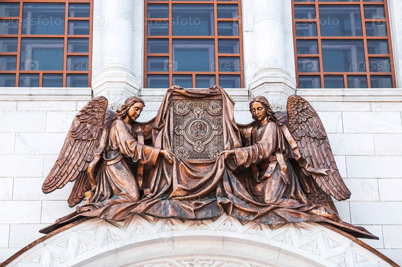 Русский православный собор. Храм Христа Спасителя в Москве. Детали, декоративные элементы на фасаде храма крупным планом. Российская Федерация, Москва