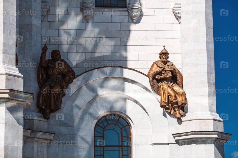 Русский православный собор. Храм Христа Спасителя в Москве. Детали, декоративные элементы на фасаде храма крупным планом. Российская Федерация, Москва