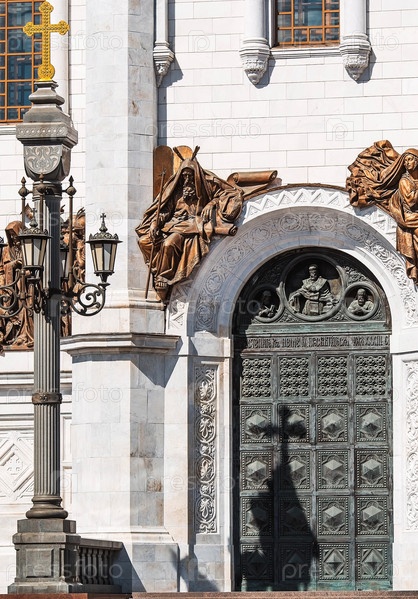 Русский православный собор. Храм Христа Спасителя в Москве. Детали, декоративные элементы на фасаде храма крупным планом. Российская Федерация, Москва