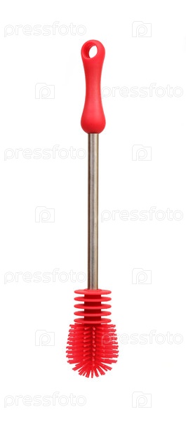 Кухонная утварь: Силиконовая щетка для мытья посуды, изолированная на белом фоне