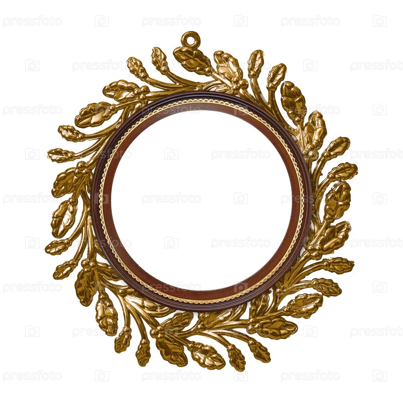 Золотая рамка (венок) для картин, зеркал или фото, изолированных на белом фоне. Элемент дизайна с обтравочным контуром