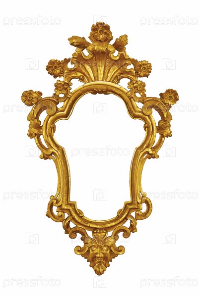 Золотая рамка для картин, зеркал или фото, изолированных на белом фоне. Элемент дизайна с обтравочным контуром