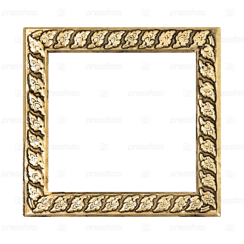 Золотая рама для картин, зеркал или фото, изолированная на белом фоне. Элемент дизайна с обтравочным контуром