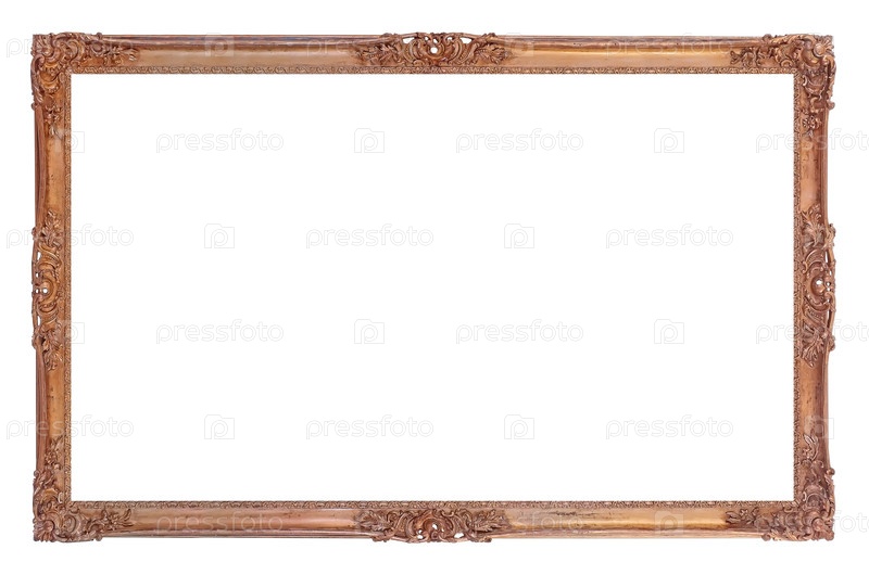 Панорамная золотая рама для картин, зеркал или фотографий на белом фоне