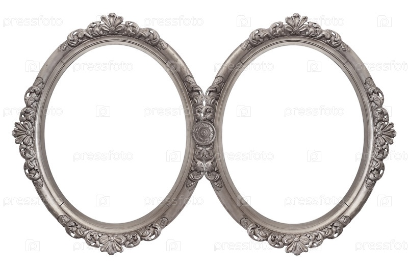 Двойная овальная серебряная рамка (диптих) для картин, зеркал или фотографий, изолированных на белом фоне. Элемент дизайна с обтравочным контуром