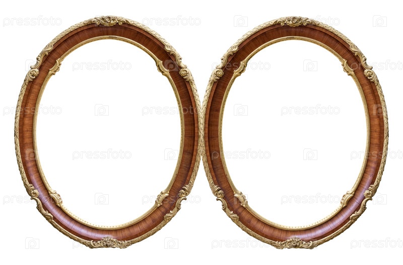 Двойная деревянная овальная рама (диптих) для картин, зеркал или фотографий, изолированных на белом фоне. Элемент дизайна с обтравочным контуром