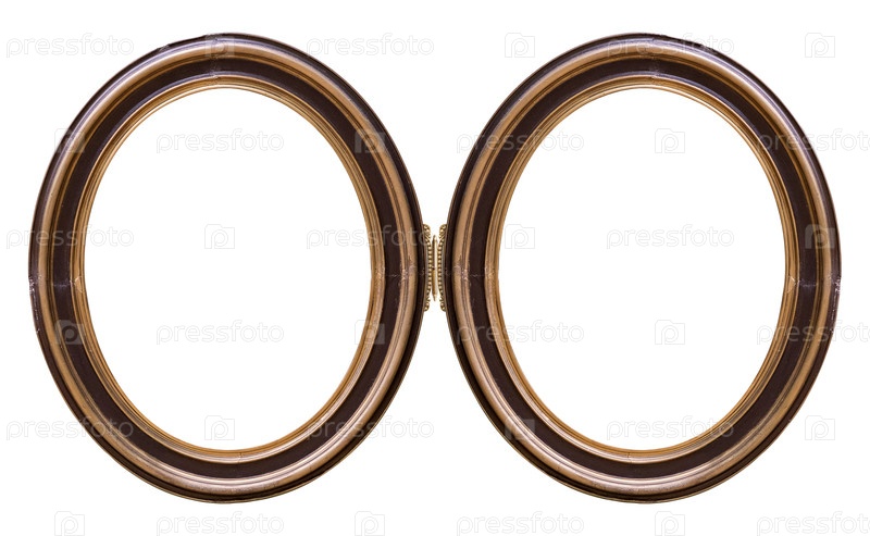 Двойная деревянная овальная рама (диптих) для картин, зеркал или фотографий, изолированных на белом фоне. Элемент дизайна с обтравочным контуром