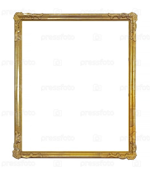 Золотая рамка для картин, зеркал или фото, изолированных на белом фоне. Элемент дизайна с обтравочным контуром