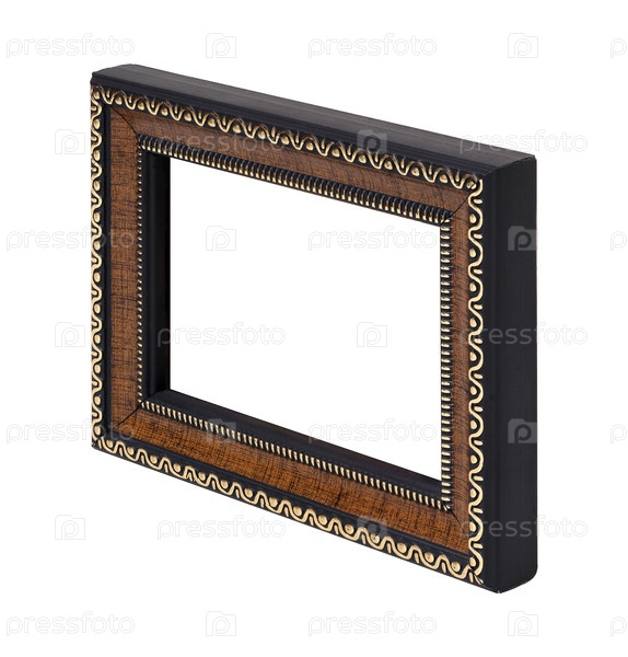 Деревянная рама для картин, зеркал или фото в перспективе, изолированная на белом фоне. Элемент дизайна с обтравочным контуром