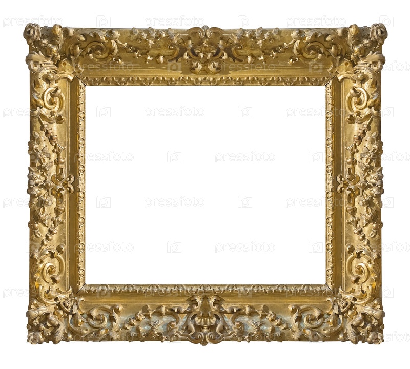 Золотая рамка для картин, зеркал или фото, изолированная на белом фоне