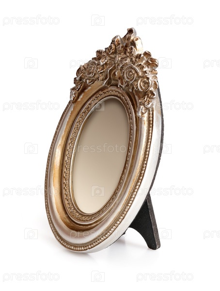 Золотая рама для картин, зеркал или фотографий в перспективе, изолированная на белом фоне