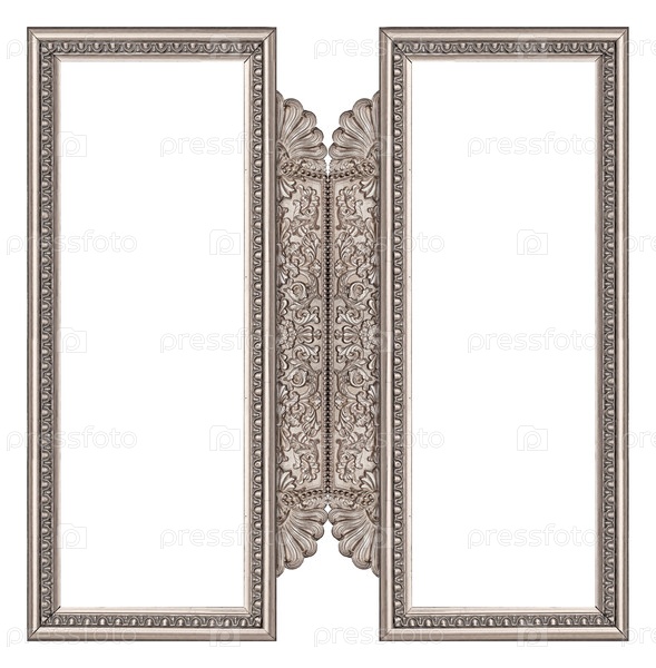 Двойная серебряная рама (диптих) для картин, зеркал или фотографий, изолированных на белом фоне