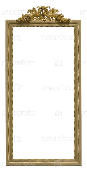 Панорамная золотая рамка для картин, зеркал или фото, изолированных на белом фоне. Элемент дизайна с обтравочным контуром