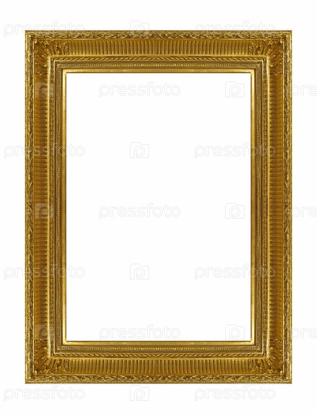 Золотая рама для картин, зеркал или фотографий на белом фоне