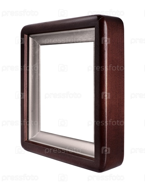 Деревянная рама для картин, зеркал или фото в фронтальном и перспективном виде, изолированная на белом фоне. Элемент дизайна с обтравочным контуром