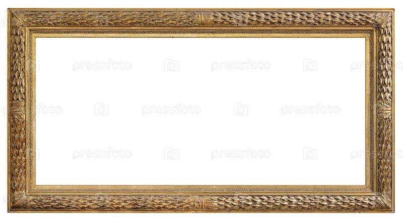 Панорамная золотая рама для картин, зеркал или фотографий на белом фоне