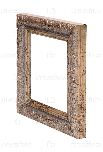 Деревянная рама для картин, зеркал или фото в перспективе, изолированная на белом фоне. Элемент дизайна с обтравочным контуром