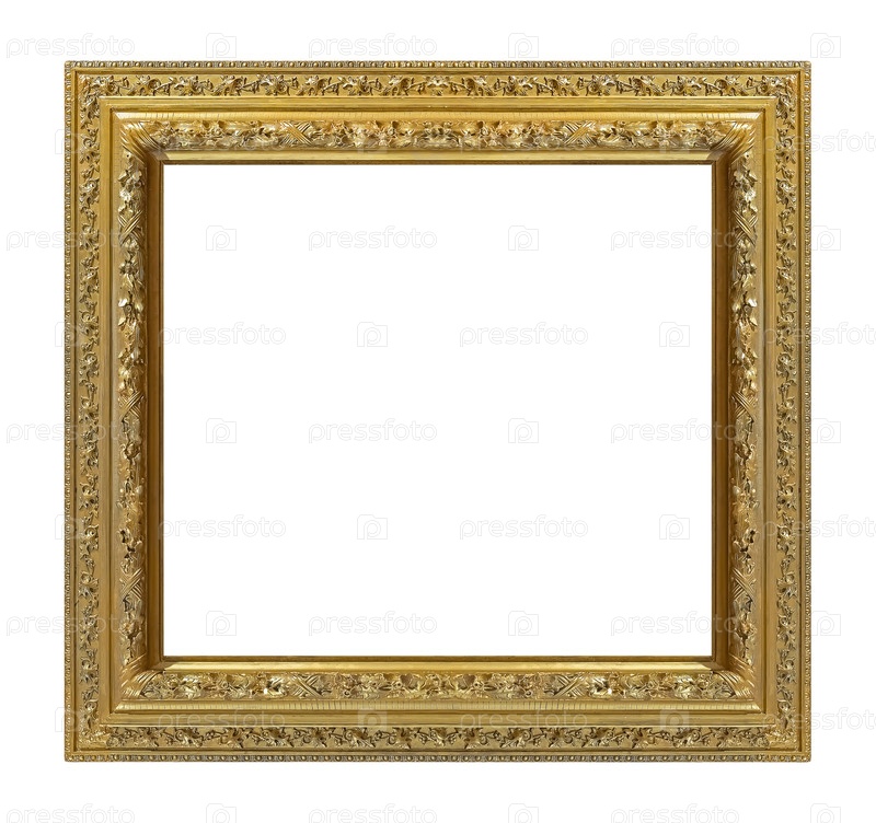 Золотая рама для картин, зеркал или фотографий на белом фоне