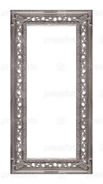 Панорамная серебряная рамка для картин, зеркал или фотографий, изолированных на белом фоне. Элемент дизайна с обтравочным контуром